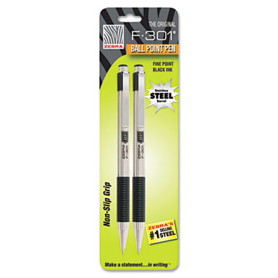 ZEB27112 F-301 Retractable Ballpoint Pen, Black Ink, Fine, 2 per Pack By ZEBRA PEN CORP.
