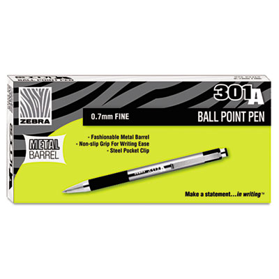 ZEB27510 301A Retractable Ballpoint, 0.7 mm, Black Ink, Gunmetal Gray Barrel, Dozen By ZEBRA PEN CORP.