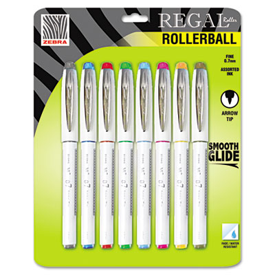 ZEB44508 Regal Roller Ball Stick Pen, Assorted Ink, Arrow, 8 per Pack By ZEBRA PEN CORP.